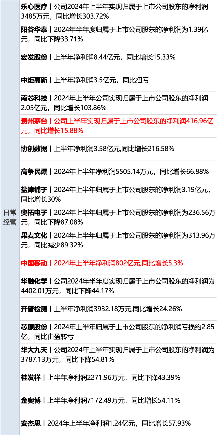 NO.2 贵州茅台上半年净利润416.96亿元,中国移动上半年日赚4.4亿元
