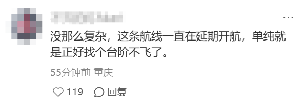 有网友评论称,“本来就卖不出去”、“这条航线一直延期开航”、“一直推迟,根本没飞起来”。