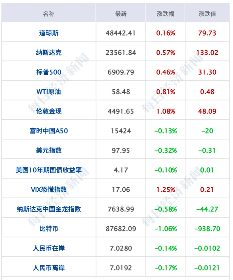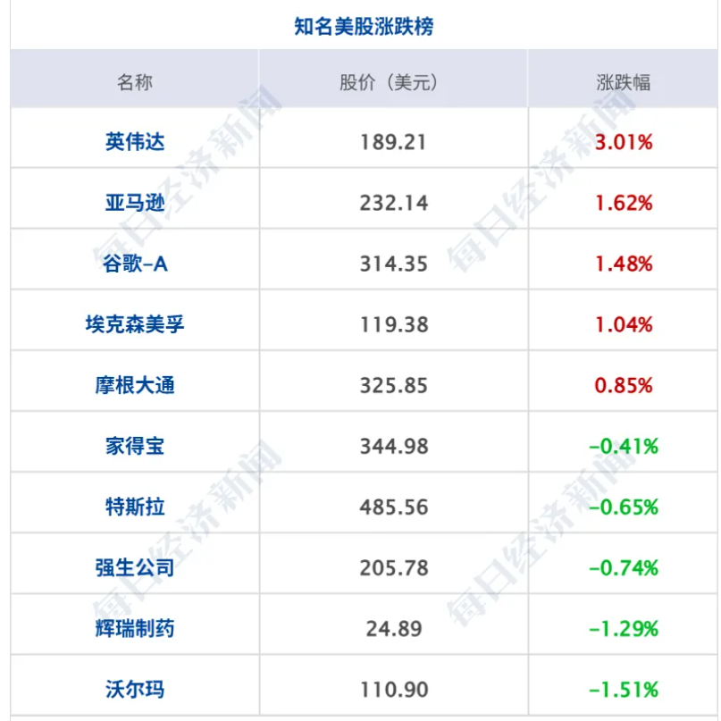 美股三大指数集体收涨,均录得日线4连涨,纳指涨0.57%,标普500指数涨0.45%,道指涨0.16%,其中,标普500指数录得收盘新高;大型科技股多数上涨,英伟达涨超3%,谷歌、亚马逊涨超1%,Meta、苹果、微软、奈飞小幅上涨;特斯拉、英特尔小幅下跌;诺和诺德涨超7%。纳斯达克中国金龙指数跌0.58%,中概股多数下跌,小马智行跌3%,蔚来、金山云跌超2%,哔哩哔哩跌近1%;阿里巴巴微涨。