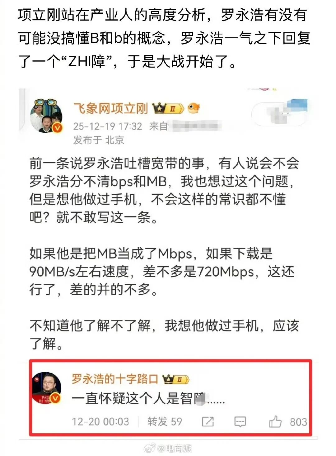 此前,微博大V项立刚因被罗永浩称“傻逼”而对罗永浩连发数文,剖析其失败的创业经历。随着骂战升级,几天前罗永浩怒怼俞敏洪的事也被翻出来,围绕他创业失败和忘恩负义的舆论甚嚣尘上。