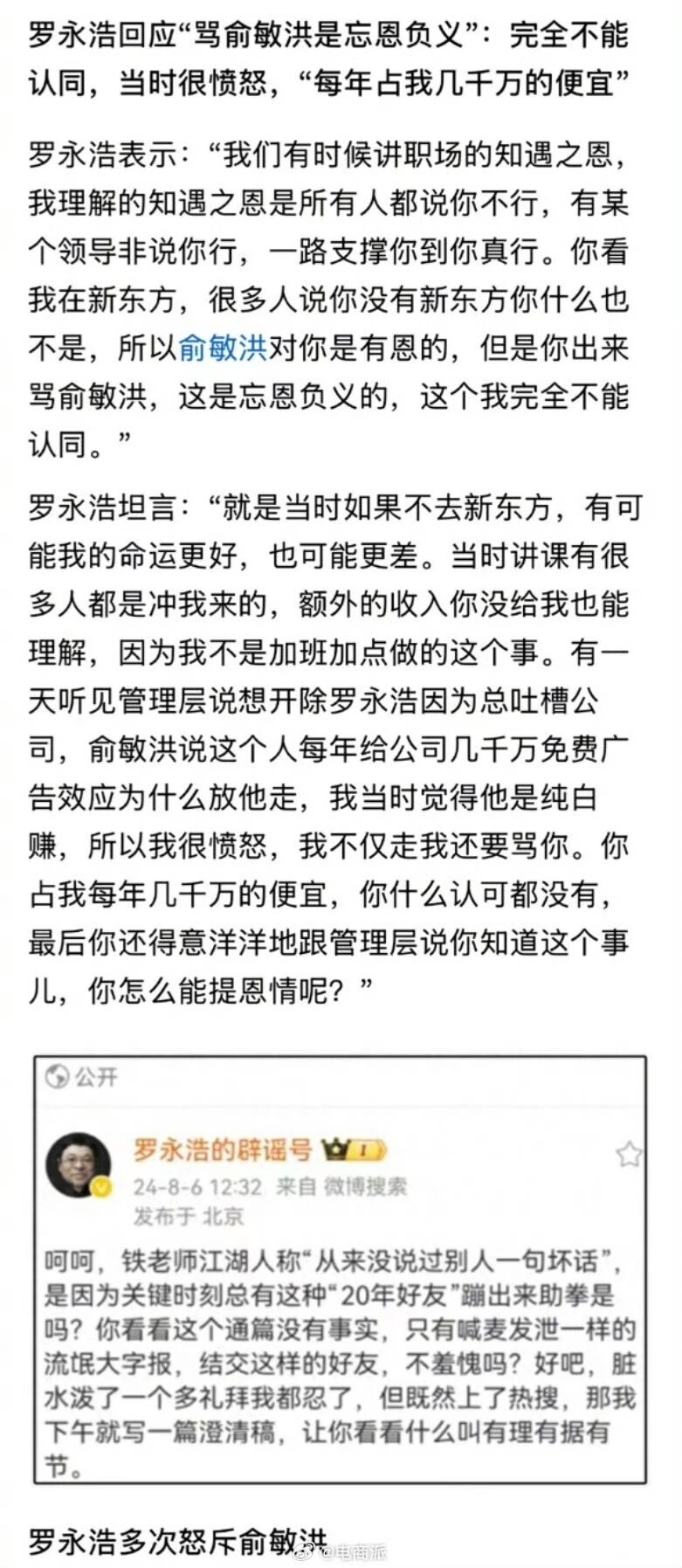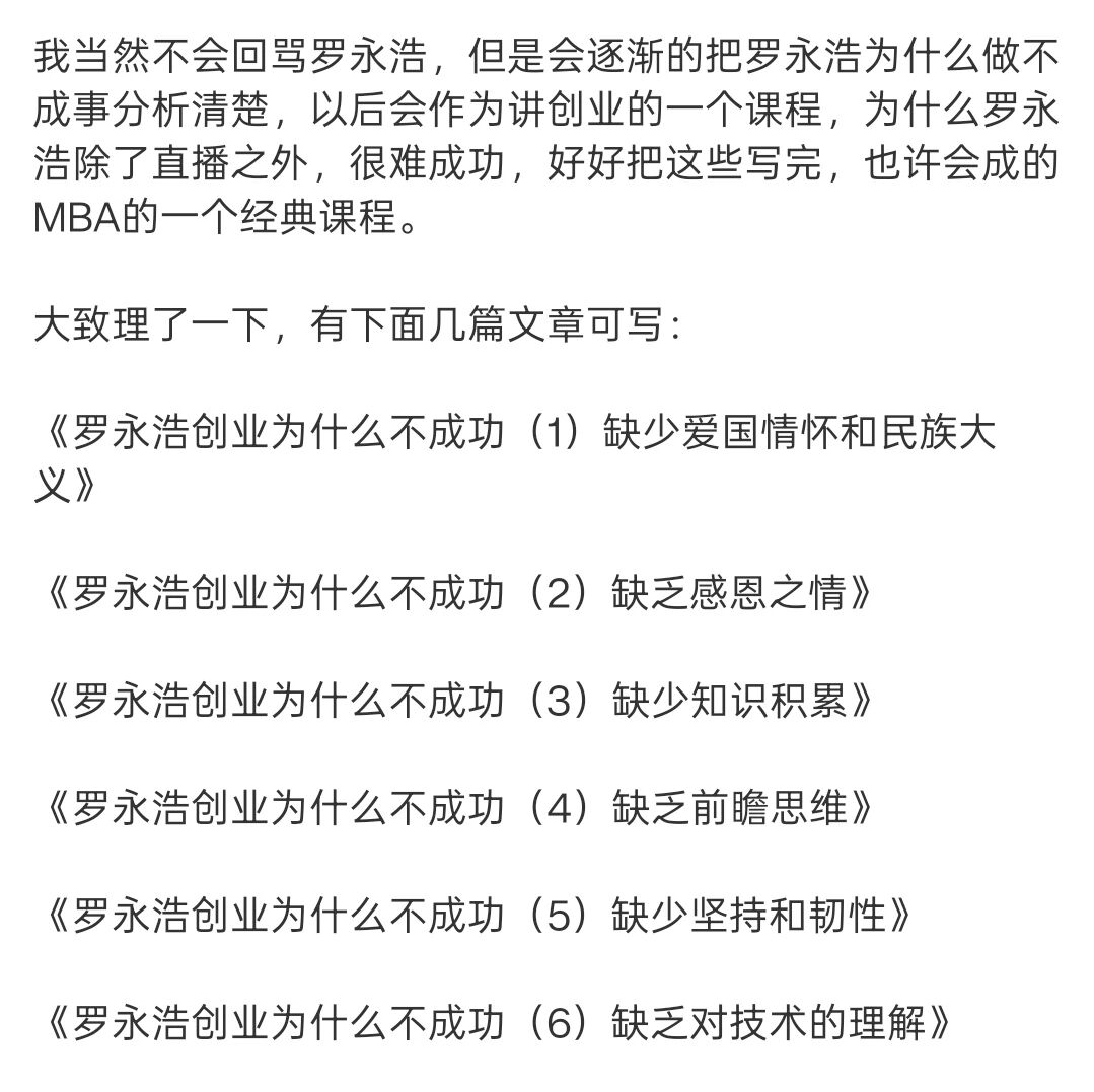“其他的干一个赔一个,包括我和他当年干的第一个创业项目老罗英语,tmd 想想将近20年前的那点破事就无比恼火,数不胜数的蠢事一句又一句的傻话,所有人拦都拦不住。公司里头烂的一塌糊涂,还一天天在外面吹牛逼。”