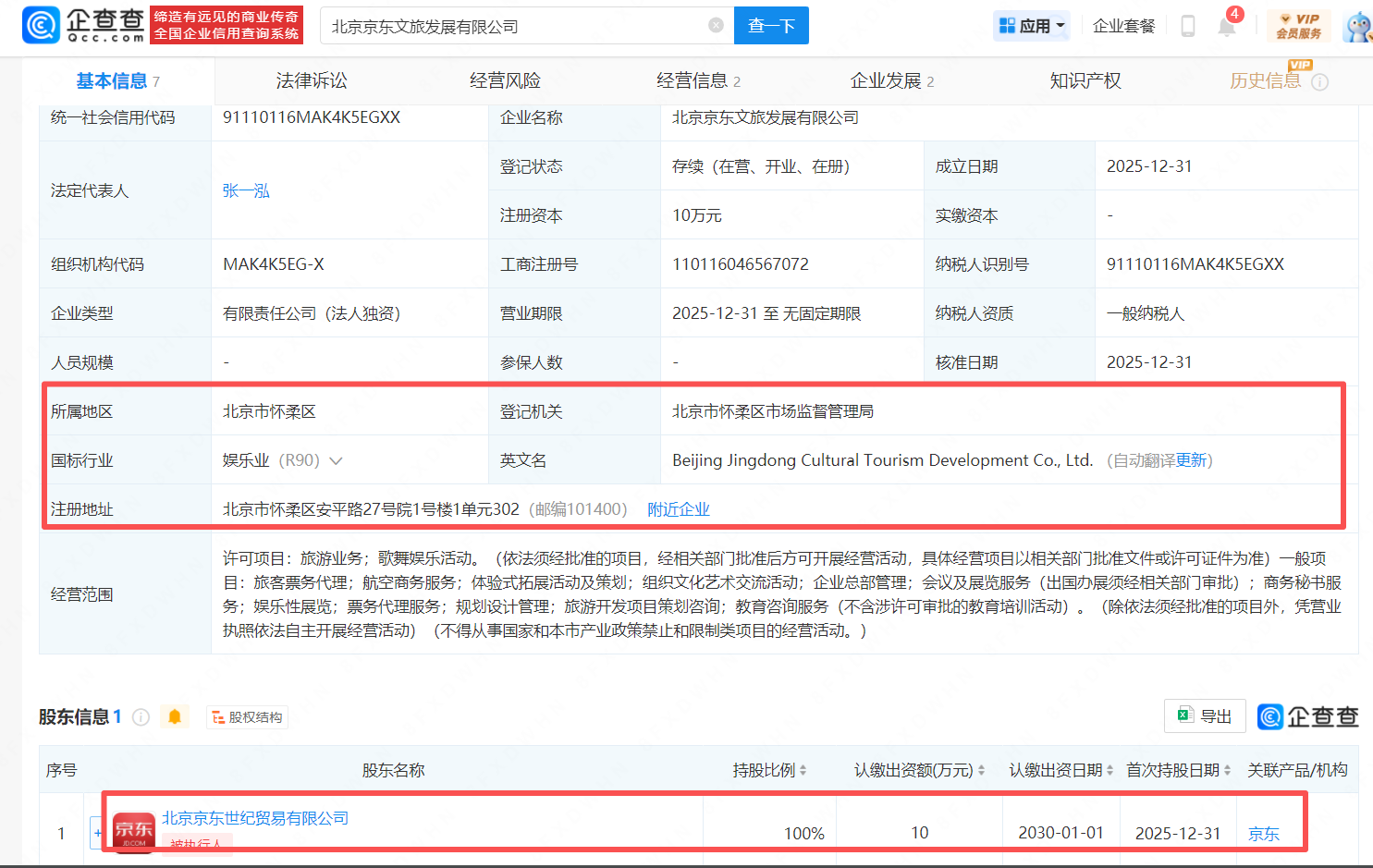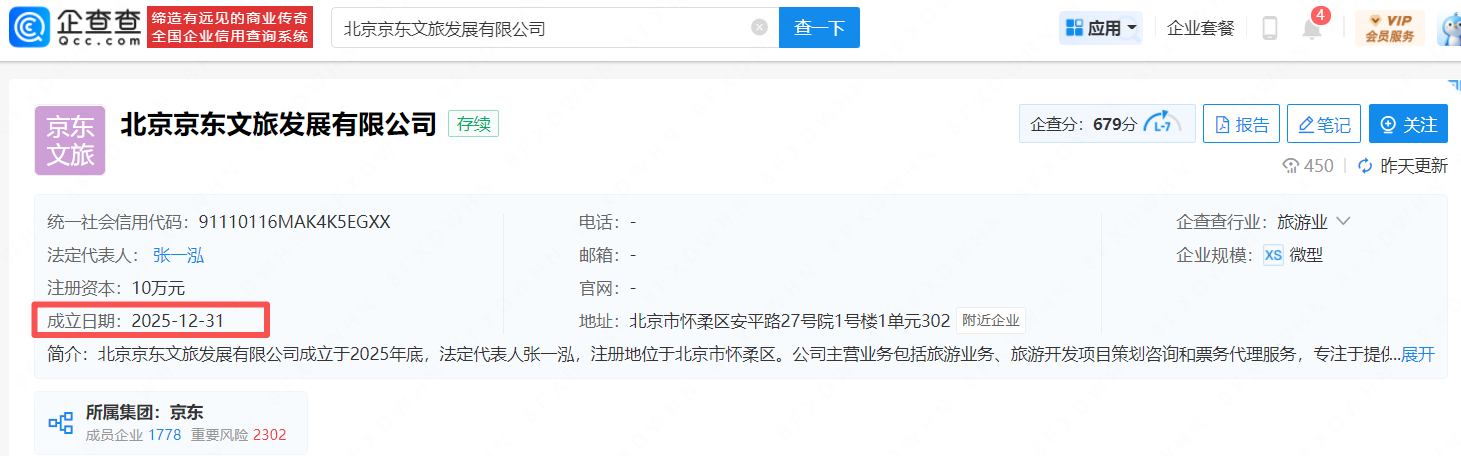 突发!京东成立文旅公司