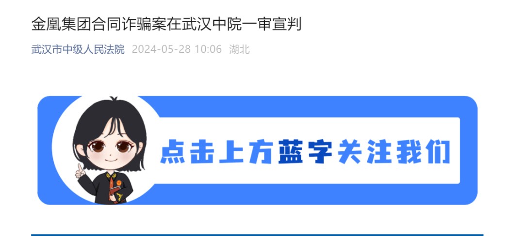 2024年5月28日,湖北省武汉市中级人民法院一审对武汉金凰珠宝股份有限公司、武汉金凰实业集团有限公司、合肥渤银投资咨询有限公司及贾志宏等18名被告人合同诈骗、骗取贷款、违法发放贷款、非国家工作人员受贿、对非国家工作人员行贿、职务侵占、假冒注册商标一案依法公开宣判。
