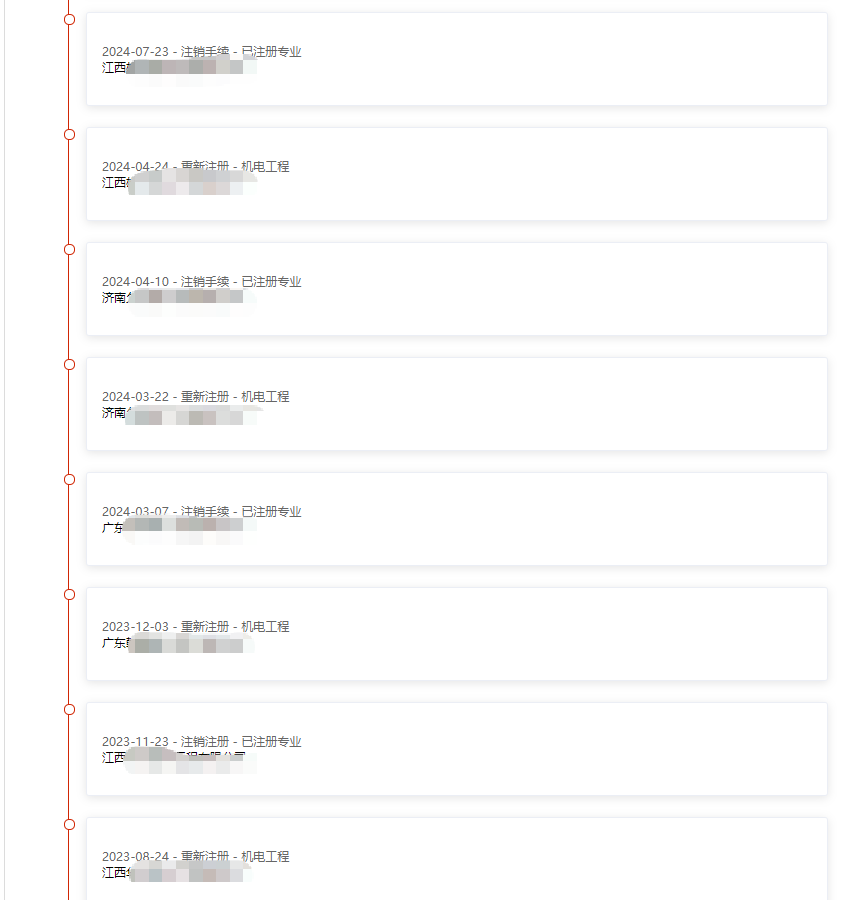 文件之中明明白白地写着,在全国平台上去公示注册人员的次数以及注册轨迹,你的职业发展(挂证)路径,在阳光下面看的一清二楚。如下图:2021年初始注册到2025年变更22次,就算5年计,一年也变更4次。