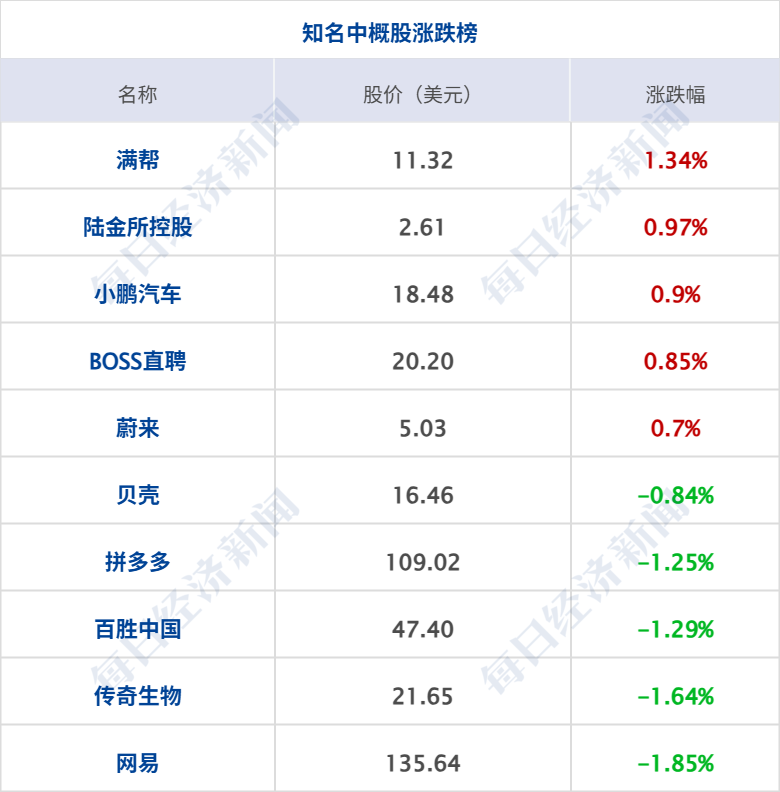 美股三大指数收盘涨跌不一,道指跌0.63%,纳指涨0.23%,标普500指数跌0.24%,特斯拉涨超3%创上市以来新高,Meta涨超1%;加密货币概念、计算机硬件板块涨幅居前,Hut 8涨近4%,Strategy、SanDisk涨超3%,昆腾涨近3%,戴尔科技涨超2%,西部数据、惠普涨超1%;油气、能源板块跌幅居前,英国石油跌超4%,壳牌、埃克森美孚、雪佛龙跌超2%。纳斯达克中国金龙指数跌0.34%,中概股涨跌不一,知乎涨超3%,金山云涨超2%,爱奇艺、网易、世纪互联、拼多多跌超1%。