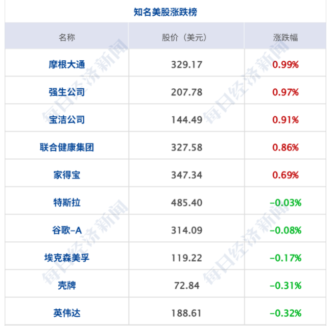 美股三大指数集体收涨,均录得日线5连涨,道指涨0.6%,标普500指数涨0.32%,纳指涨0.22%,其中,标普500指数、道指均创收盘历史新高;大型科技股涨跌不一,苹果、微软、奈飞、亚马逊、Meta等小幅上涨;谷歌、英伟达、特斯拉、英特尔小幅下跌。纳斯达克中国金龙指数微跌0.07%,中概股涨跌不一,知乎涨近2%,拼多多、百胜中国涨超1%;金山云、爱奇艺跌超1%。