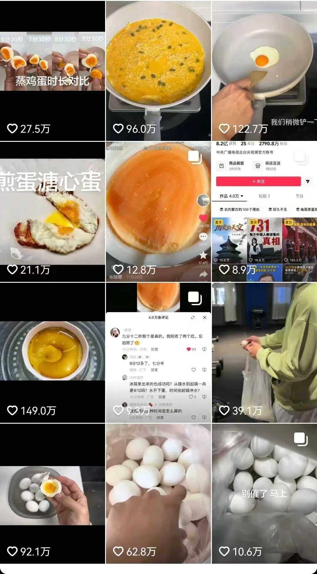 其实,蛋神从爆火开始就伴随着争议。本来是素人的他,因为两句评论爆火。“这个是水开下蛋,9分12秒捞出立马过凉水的效果”,还以一天吃40个水煮蛋的经历证明方法的权威性。这一煮鸡蛋的方法被全网“抄作业”,他也因此被称为蛋神。