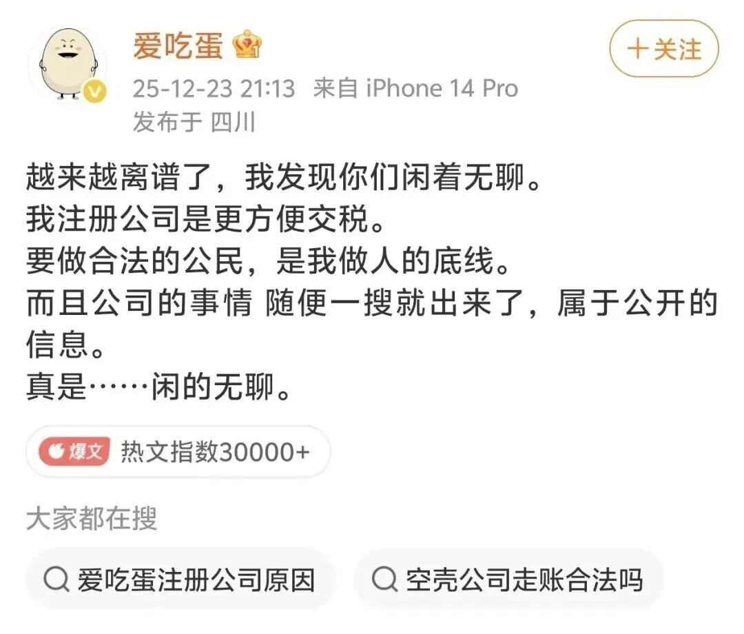 疯狂涨粉超400万,转身开公司当老板,蛋神这急着变现的举动被骂惨了。