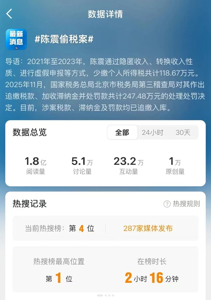 据了解,不久前她曾因关联公司涉嫌逃税而冲上热搜。天眼查信息显示,该公司因逃税逾1600万元被税务部门查处,罚款高达829.56万元。