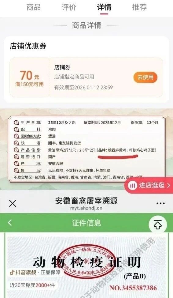 安徽省六安市麻黄鸡产业协会发布声明公开打假这款商品。该协会会长展示的与辉同行橱窗电商详情页上,该商品标注品种为“皖西麻黄鸡”。