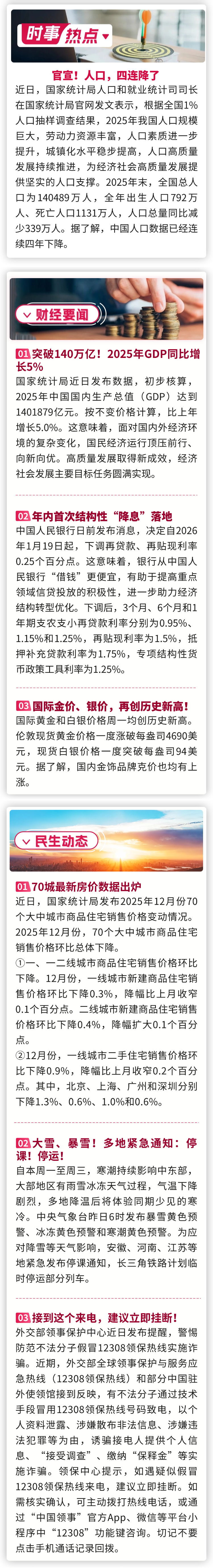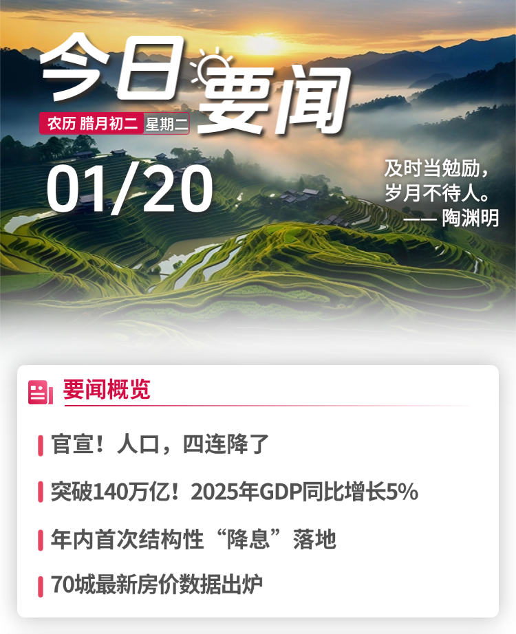 1月20日要闻:官宣!人口,四连降了