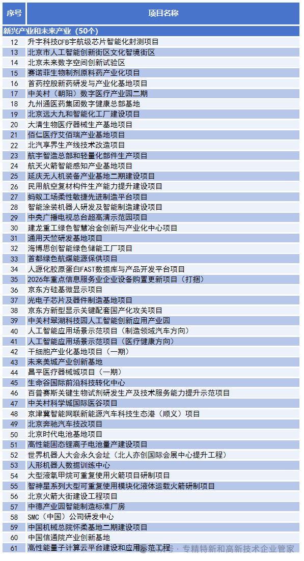 同时,结合“十五五”时期重大工程项目和重大项目储备库,将其中预计于后续年度实施的高能同步辐射光源二期、京藏高速改扩建工程、北京舞蹈学院新校区等200个重大项目列入前期推进项目,加强项目调度,力争推动一批项目提前至2026年开工。
