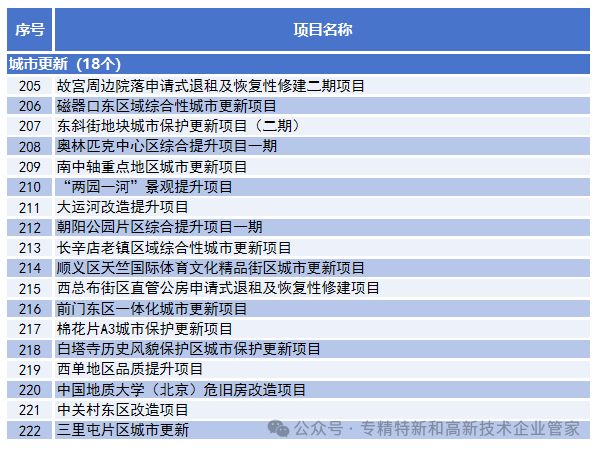 打开“住有所居”新空间,安排住房和社区综合服务项目4个。 激发存量产业空间活力,实施区域综合性城市更新,营造舒适、便利、美丽的高品质公共空间,安排城市更新项目18个。 加快高校提质扩容,优化基础教育资源布局,安排教育项目35个。 完善医疗卫生服务体系,更好满足“一老一小”多层次需求,安排医疗养老项目19个。 建设文化荟萃之都,丰富体育健身设施,安排文化体育项目12个。 着力构建布局均衡、通达便利的全域公园体系,加快推进京华绿道联通城市空间,安排花园城市建设项目7个。 优化商业消费载体布局,推动传统商业设施改造升级,提升居民消费便利化水平,安排消费项目5个。
