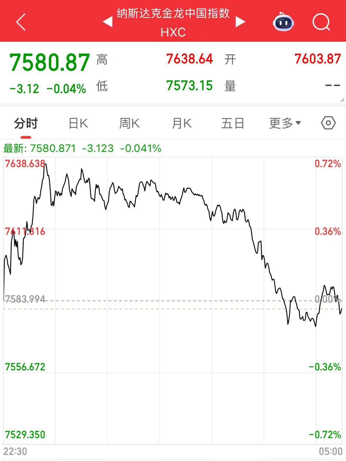 中概股方面,纳斯达克金龙中国指数收跌0.04%,报7580.87点。文远知行收跌约4%,小马智行跌近0.9%,理想汽车跌0.4%,蔚来跌0.2%,小鹏汽车、万国数据跌0.1%,而拼多多涨超1%,百度涨近0.4%,阿里涨逾0.2%。